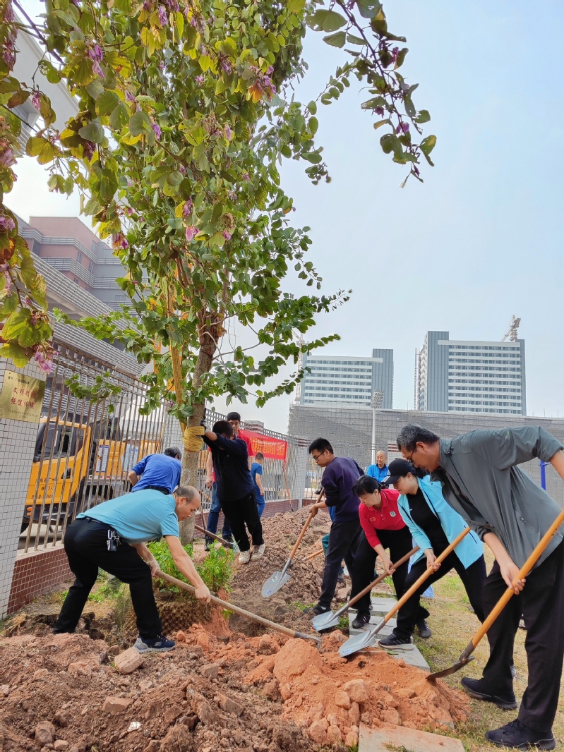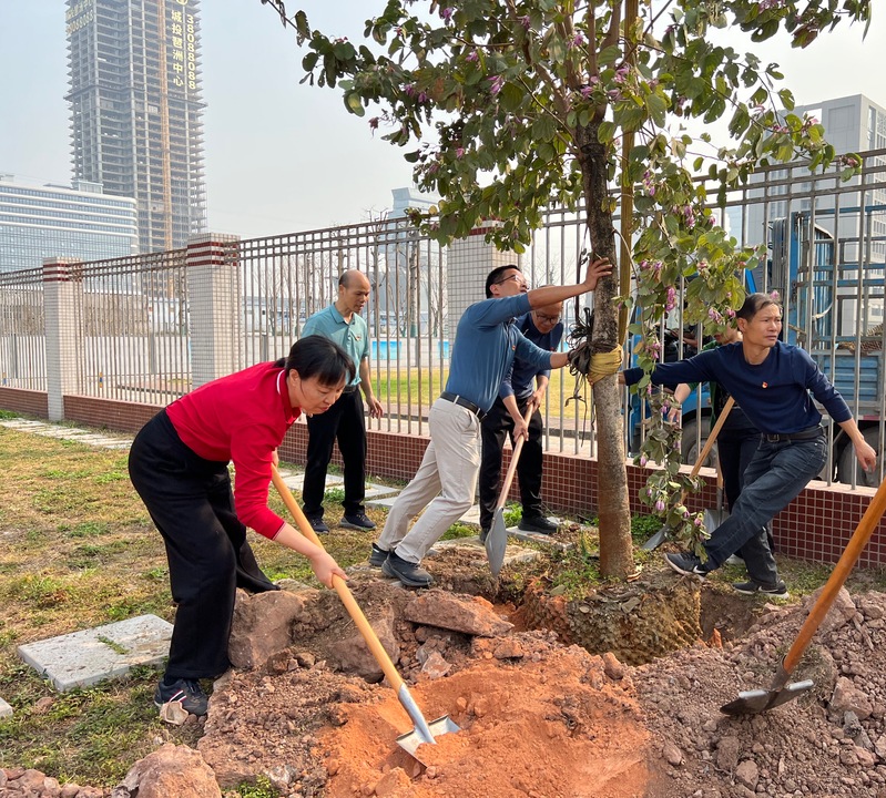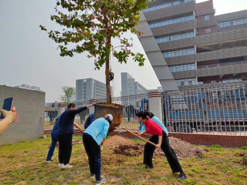 日开花”。植树现场,在支部书记郑红艳、后勤处处长胡卫标的带领下,大家一同挖坑、扶