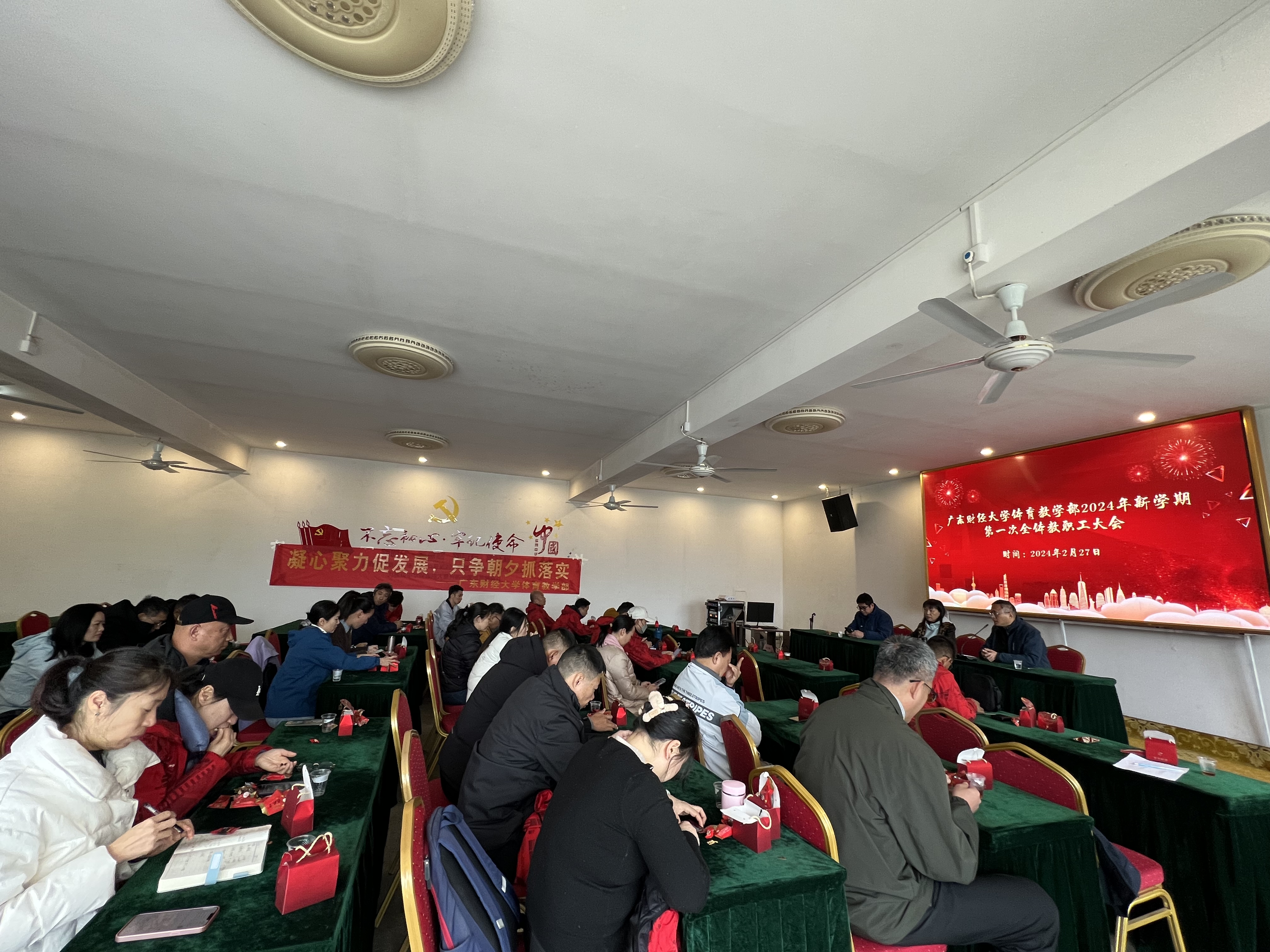 郑红艳讲话,总结2023年所取得的成绩。指出2024年工作围绕“一流财经,一流体育”的工作目标开展工作,把今年作为TapTap点点高质量发展的建设年,加强党建工作,持续建设学习型、服务型、创新性、实干型、廉洁型党支部;落实向心力、战斗力、创新力、驱动力和免疫力五项工程;抓好体育教学、体育竞赛、学科科研、场馆管理、体质测试五项重点工作。争取成功申办体育专业成立TapTap点点;落实一院一品校园体育特色文化建设;实施课内外一体化教学改革;打造教学、科研团队;推进实施模块化教学改革。强调加强组织领导,狠抓工作落实,班子成员党政同责,制定任务清单、责任清单,上下齐心合力合力抓,形成闭环式管理模式。要求全体教职工提振信心,进一步坚守战略定力,迅速进入收心状态,向目标全力冲刺,快速形成体育部高质量发展的生动画面和浓厚氛围。