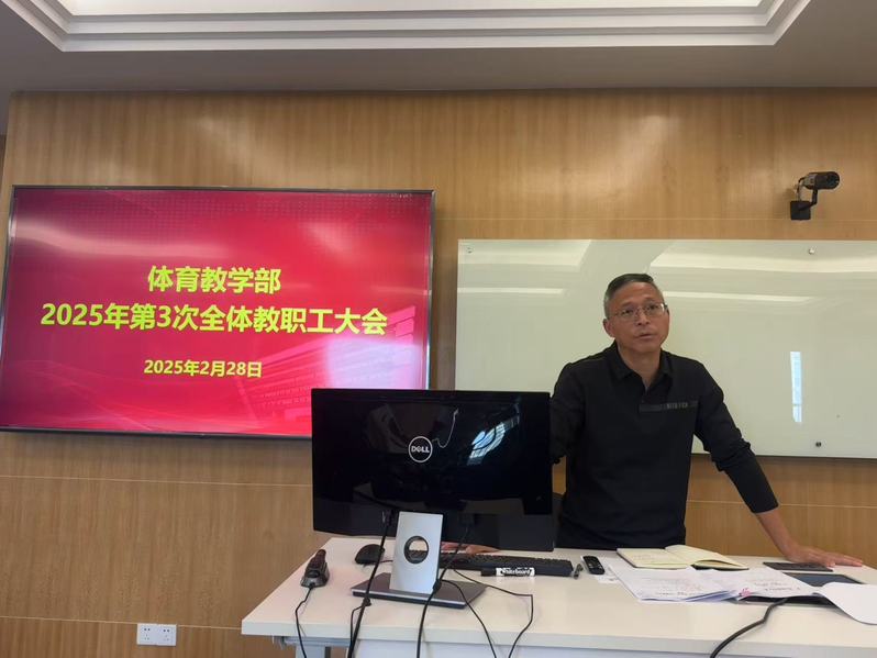 谢玉波副主任就教学工作进行部署。他强调要加强教学常规管理,规范教学行为,确保每一堂体育课都能高质量开展。加强对青年教师的培养,鼓励教师积极参加教学竞赛,提升教学效果。